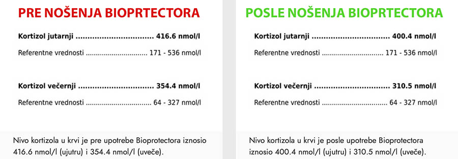 4. Kortizol – Pre i posle nošenja BioProtectora
