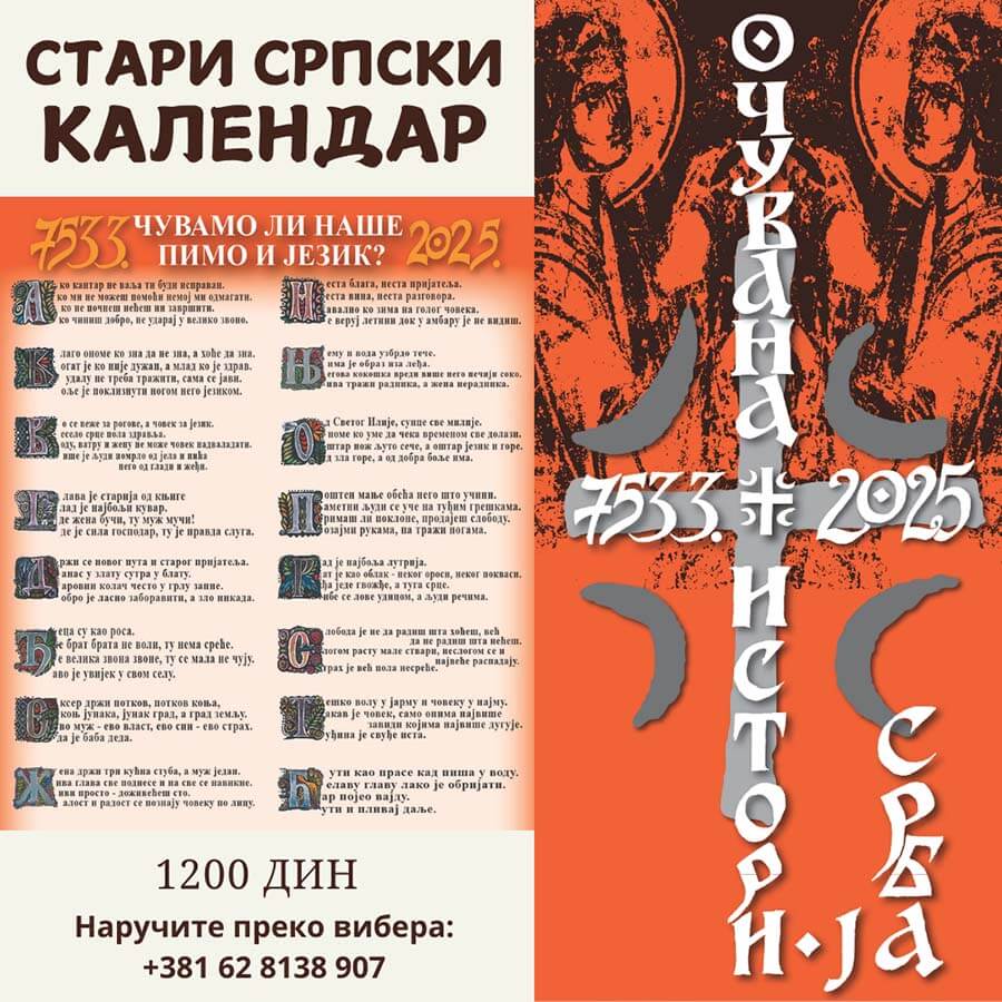 👉 Stari srpski kalendar – Očuvana istorija Srba – https://zlatnodoba.org/proizvod/kalendar-ocuvana-istorija-srba/